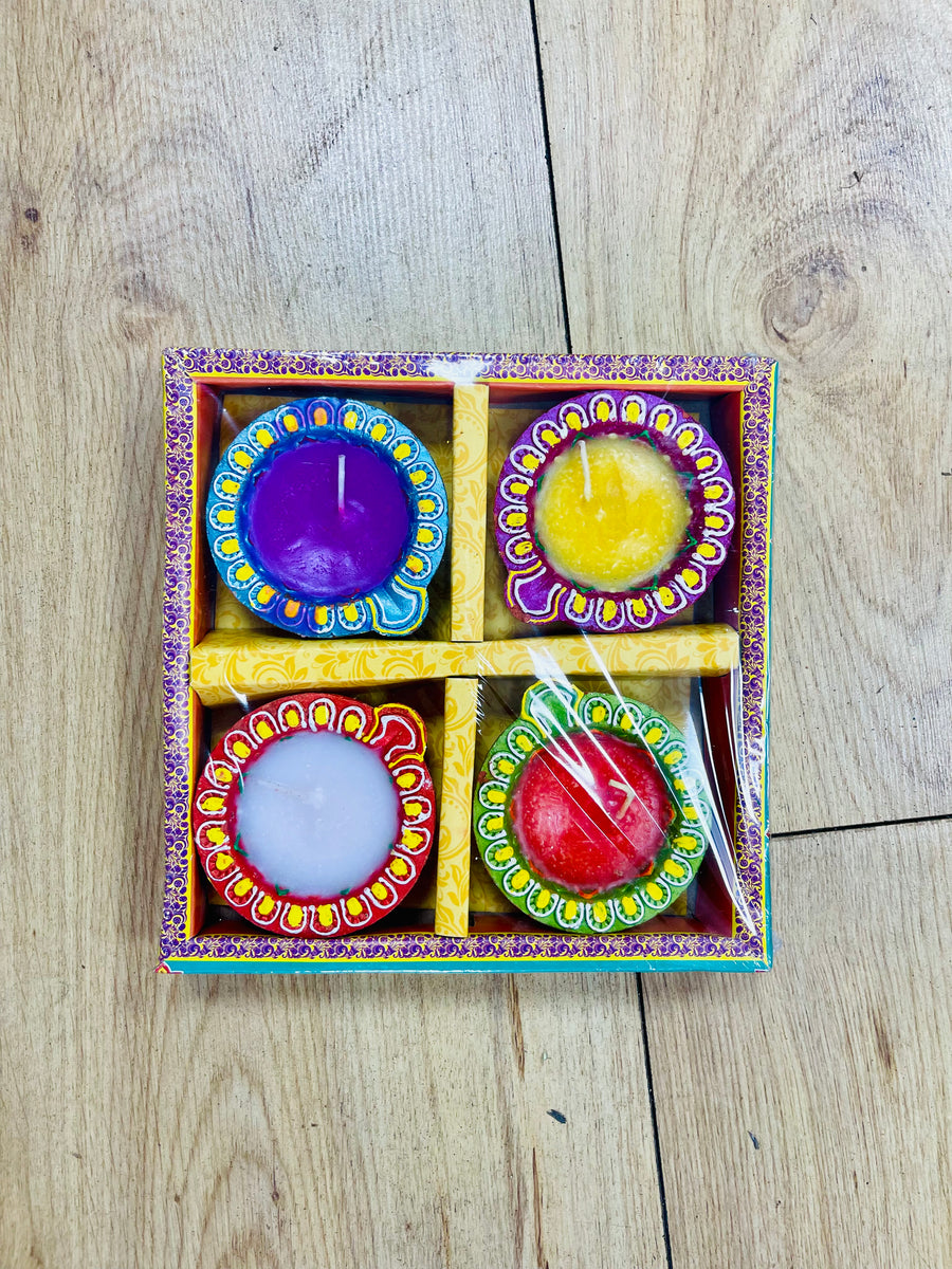 Festive clay diyas with wax (Pattern and colors may vary from the image)