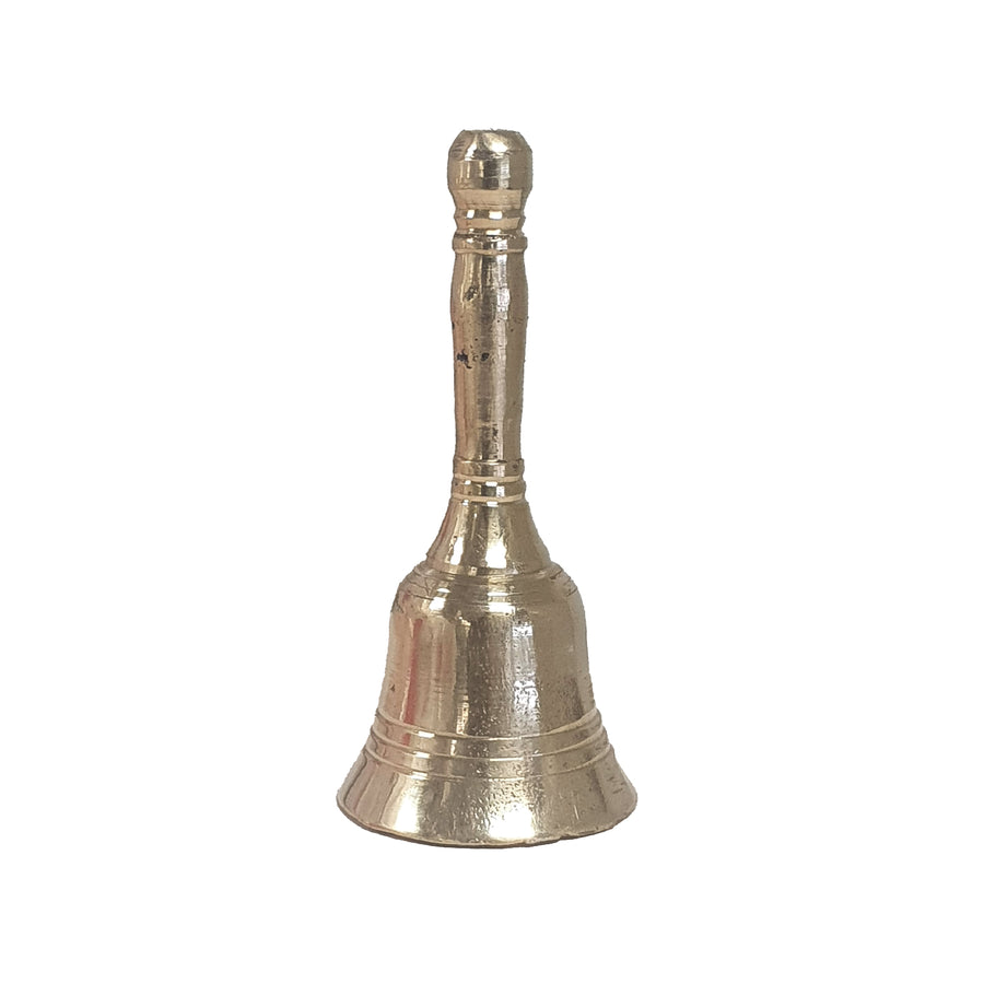 The Pooja Bell, with its gleaming metal surface, is an instrument of devotion that resounds through the corridors of spirituality. With each ring, it dispels negativity, inviting an atmosphere of sanctity and reverence. Its clear, sonorous tone pierces the silence, signaling the commencement and culmination of sacred rituals. More than just a metallic object, the bell serves as a voice of the devotee, calling out to the divine and harmonizing the energies around. It's a bridge between the terrestrial and the celestial, blending the sounds of earth and heaven. Each chime, resonating with purity and purpose, uplifts the soul and deepens the bond with the divine.