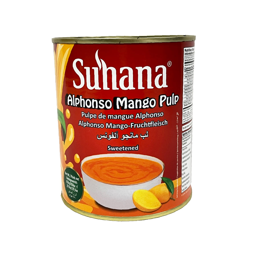 Suhana Alphonso Mango Pulp is a delightful and convenient way to enjoy the sweet and tropical flavor of Alphonso mangoes all year round. This canned mango pulp is made from the finest Alphonso mangoes, known for their rich, fragrant, and sweet taste. Suhana Alphonso Mango Pulp is versatile and can be used in a variety of culinary applications, including making mango lassi, desserts like mango ice cream, and as a topping for pancakes and waffles. It captures the essence of Alphonso mangoes, offering a taste of tropical indulgence that's perfect for satisfying your mango cravings, regardless of the season.