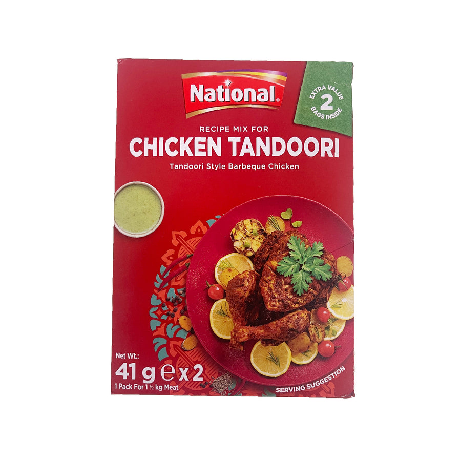 National Chicken Tandoori Recipe Mix is a convenient blend of spices and seasonings specially crafted to help you prepare delicious chicken tandoori at home. This mix contains a balanced combination of ingredients like red chili, coriander, cumin, and various spices that impart the authentic flavor and color to your tandoori chicken. To use it, marinate chicken pieces in a mixture of yogurt and this spice blend, then grill, roast, or cook as desired for that classic tandoori taste. With National's Chicken Tandoori Recipe Mix, you can easily recreate the flavors of your favorite restaurant-style chicken tandoori in the comfort of your kitchen. Enjoy the rich and smoky taste of tandoori chicken with the convenience of this spice mix.