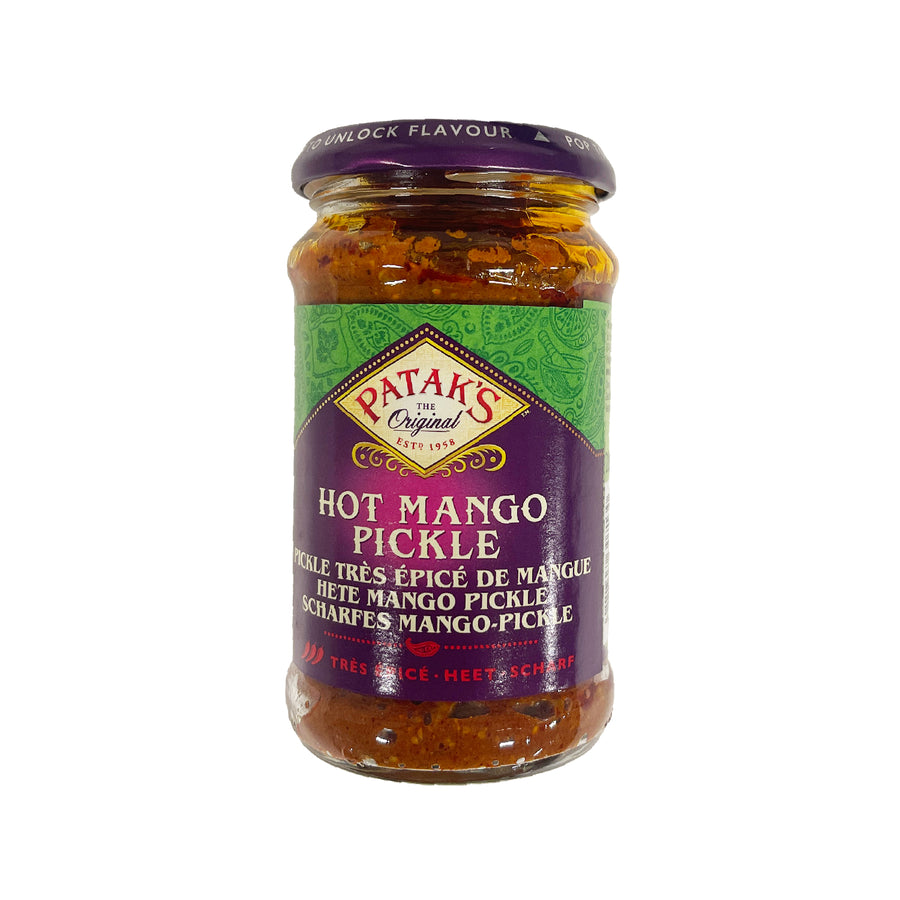 Patak's Hot Mango Pickle is a fiery and tangy Indian condiment that infuses the bold flavor of ripe mangoes with a hot and spicy kick. This pickle is expertly crafted with chunks of mangoes, a potent blend of spices, and herbs, delivering a tantalizing combination of heat and tanginess. It's a versatile accompaniment that adds a fiery twist to a variety of Indian dishes, from rice and curries to bread and snacks. Patak's, a trusted brand celebrated for its authentic Indian flavors, ensures that this hot mango pickle preserves the essence of traditional recipes while offering a convenient and intensely spicy addition to your meals. It's not just a condiment; it's a burst of heat and flavor that invigorates your culinary experience, igniting your taste buds with the zest of Indian cuisine.
